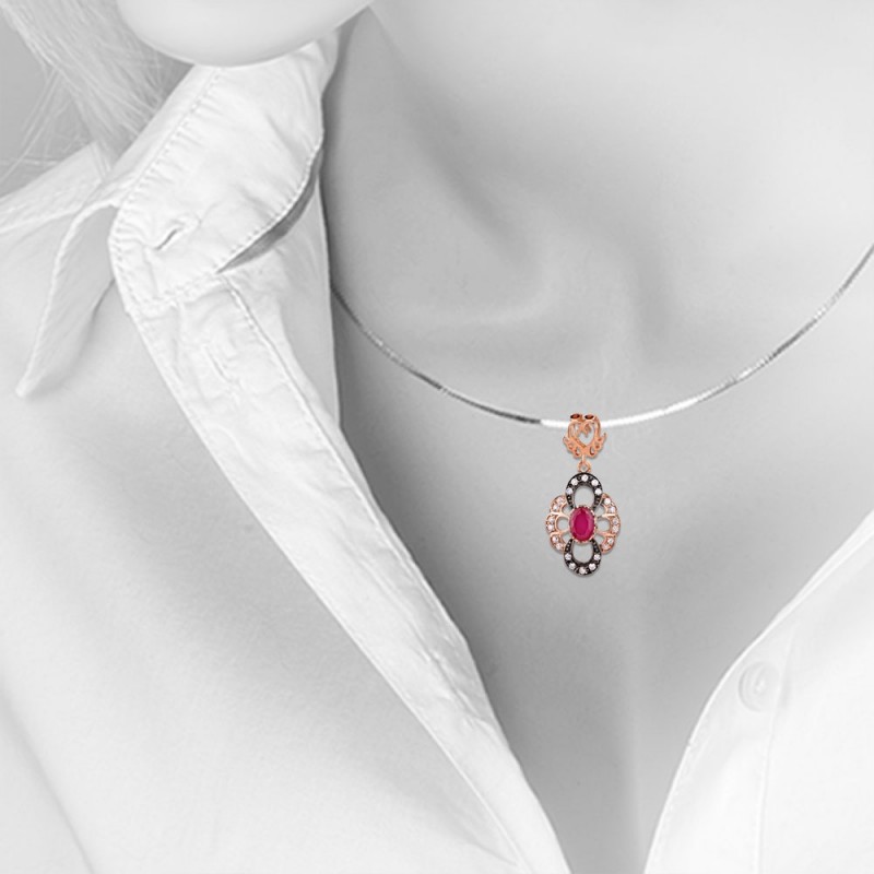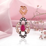 Gold-plated silver pendant "Leyla". Ruby and cubic zirconia
