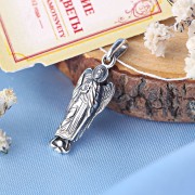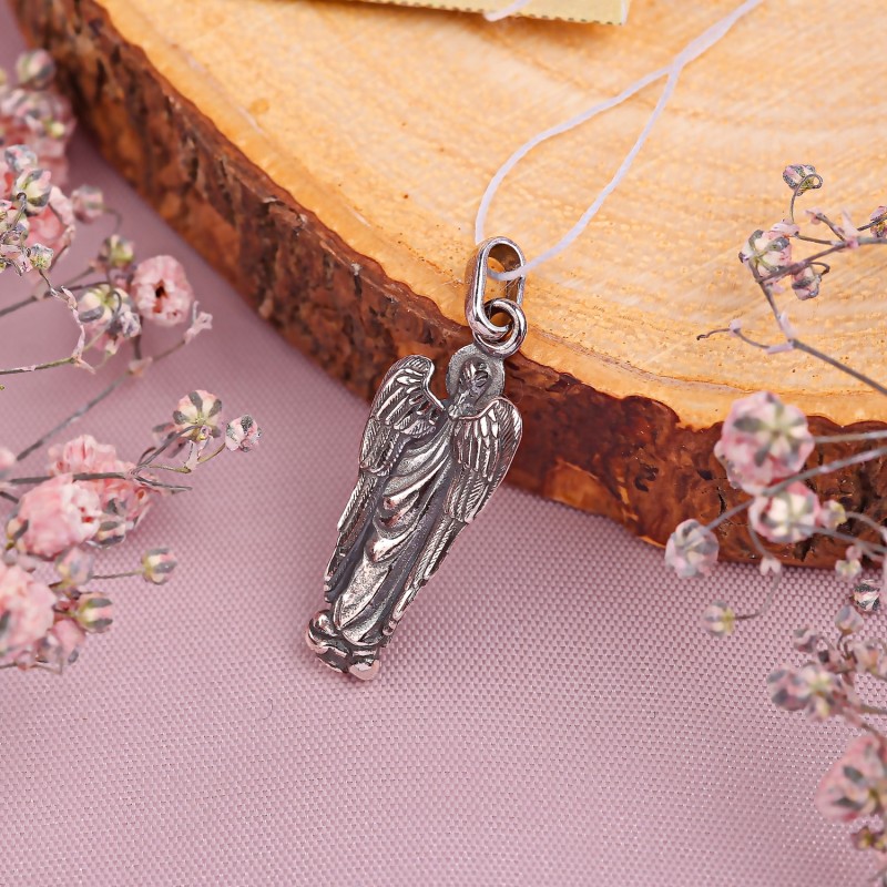Patterned silver pendant in the shape of an angel. Blackened silver 925