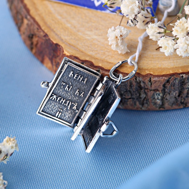Silver pendant - prayer book made of blackened 925 sterling silver.