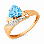Women's ring with topaz 585. A modern ring made of 585 red gold with a trillion-cut Swiss blue topaz. The clear, geometric shape gives the piece of jewelry a dynamic and contemporary look.