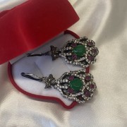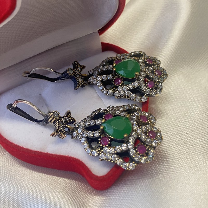 Chic ethnic earrings made of blackened and gold-plated 925 silver with inserts of enchanting emeralds, rubies and sparkling zirconias!