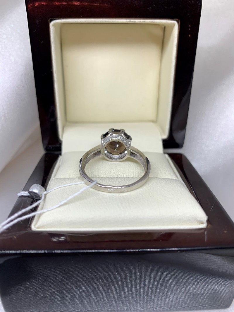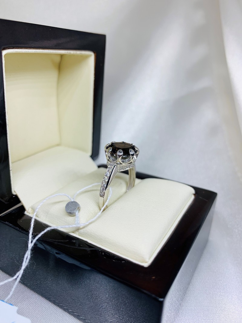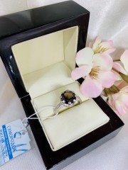 Silver ring with smoky quartz & zirconia