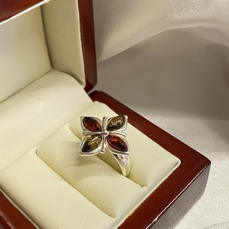 Elegant ring made of 925 silver, decorated with amber, with this amazing "piece of the sun", in all shades of cognac, and green color, will delight and delight you thanks to its beauty! The ring will perfectly emphasize the tenderness, charm and naturalness of your beauty and draw attention to the femininity of your hands.