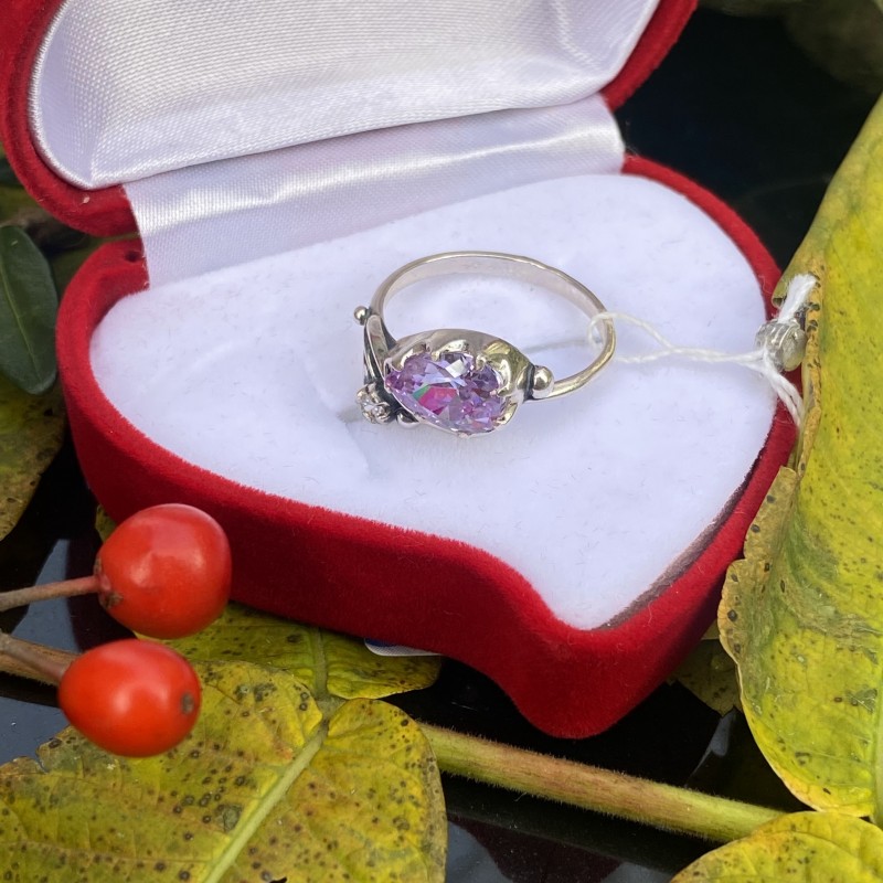 Delightful delicate ring with charming amethyst and sparkling zirconia in a beautiful blackened silver frame made of 925 silver.