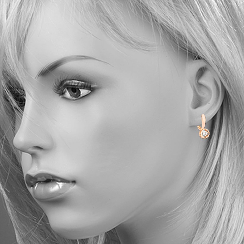 Charming earrings made of Russian red gold 585 sample with 2 brilliants 0.059 ct 5/6A kr -57