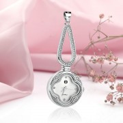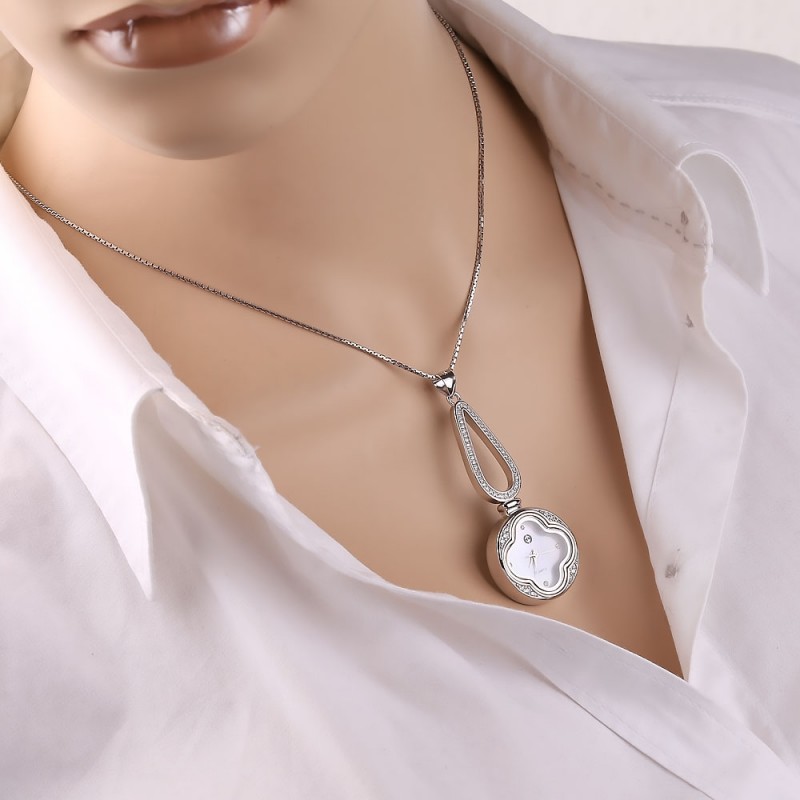 An elegant quartz watch as a pendant, made of 925 sterling silver and decorated with sparkling zirconia.