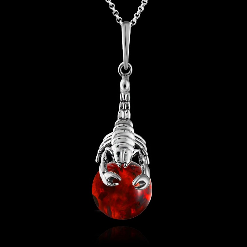 Silver pendant "Scorpion". Amber