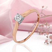 Anillo de oro con diamantes en Alemania. Anillo elaborado en oro rojo ruso 585 con detalles en oro blanco talla diamante que resaltan a la perfección el brillo y la belleza única de los diamantes. ¡Un elegante anillo de oro con diamantes para los hermosos dedos de las mujeres! Por supuesto, toda mujer sueña con un regalo tan inolvidable e inolvidable como un anillo de oro con un diamante.