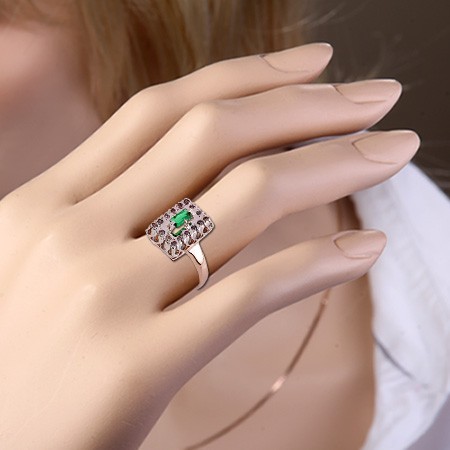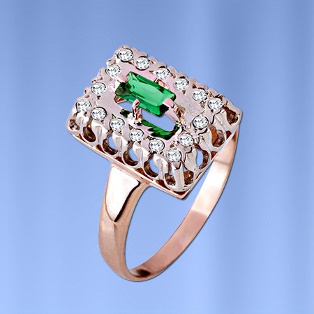 Anillo elaborado en oro rojo/blanco ruso de 585º con brillantes de 0,40 ct, esmeralda (6,0 x 3,0 mm). Altura 16,0 mm