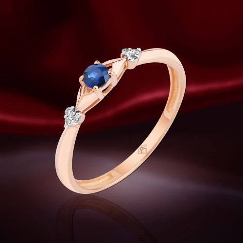 Anillo elaborado en oro 585° con 6 diamantes talla brillante kr 17 0.139 2/2 y zafiros nat 3.0 0.139 mm 2/2