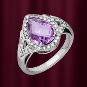 Anillo Gianni Lazzaro de oro blanco con diamantes talla brillante y amatista