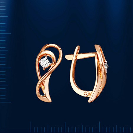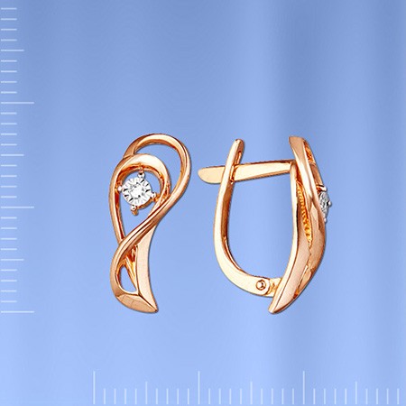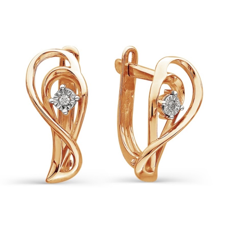 Pendientes ladylike realizados en oro rojo ruso de 585º con 2 diamantes talla brillante de 0,013 quilates. Altura aprox. 13 mm