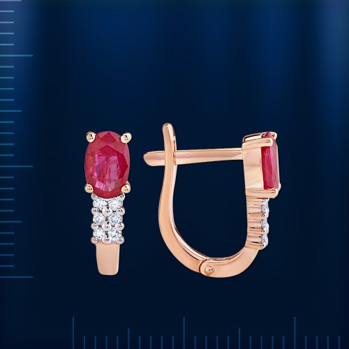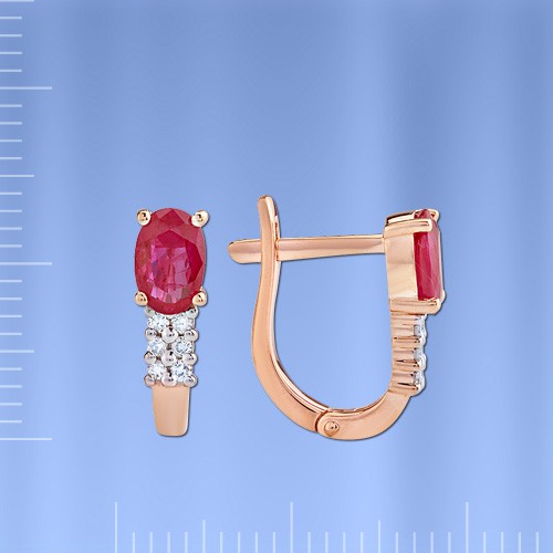 12 diamantes 57 0,097 quilates 3/5A. 2 rubíes 0,935 6,0 x 4,0 mm. Altura aprox. 13,0 mm.
