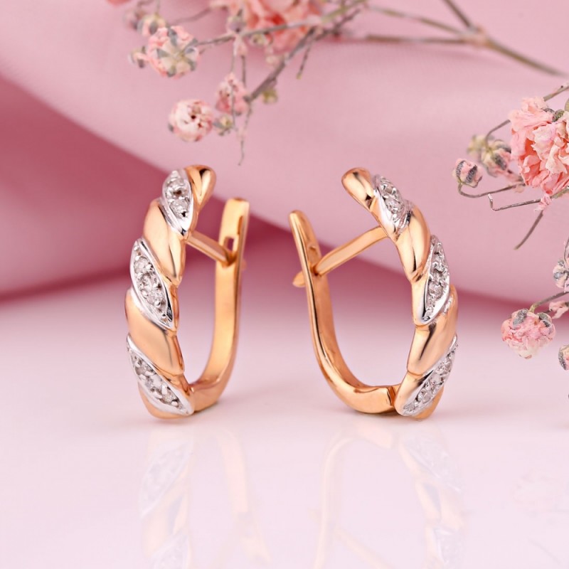 Pendientes fabricados en oro ruso rojo/blanco 585°.