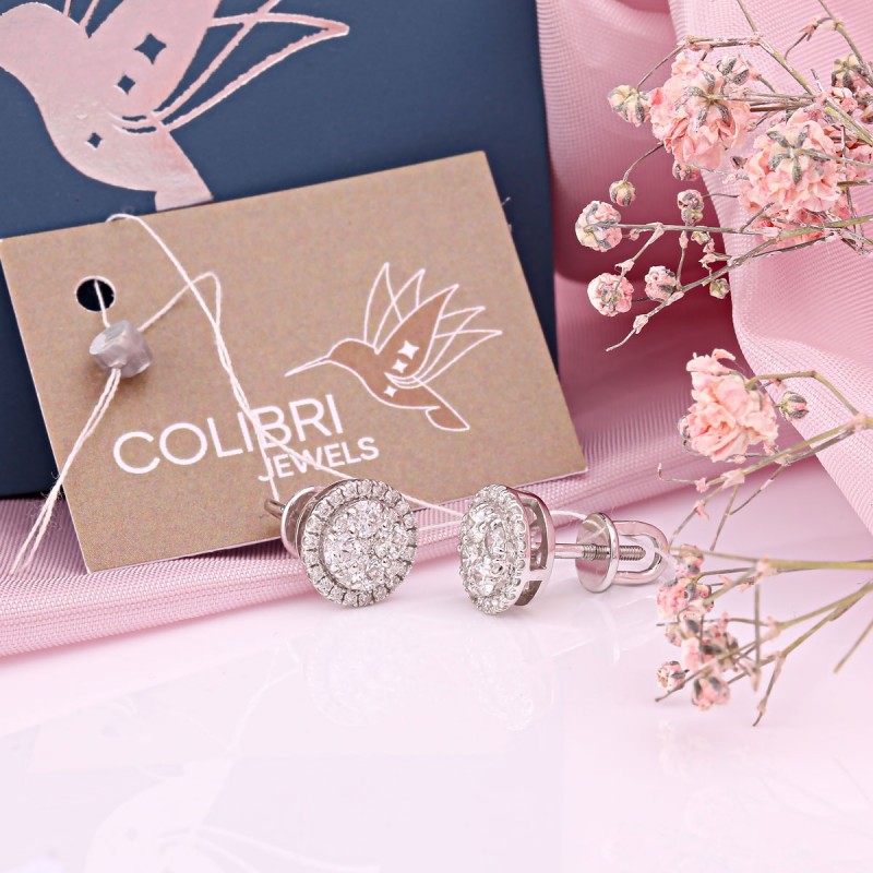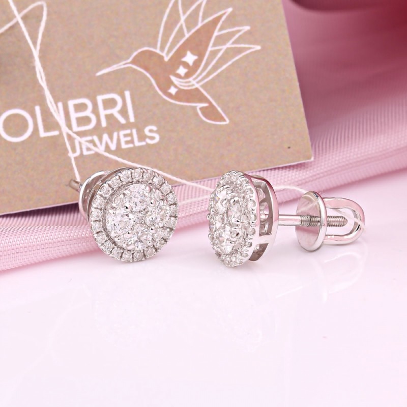 Pendientes de oro con diamantes en oro blanco 585. Pendientes pequeños y sencillos de oro blanco 585 con diamantes. Si desea resaltar en su pareja su feminidad, gracia, sonrisa y belleza, entonces este regalo es ideal para usted.