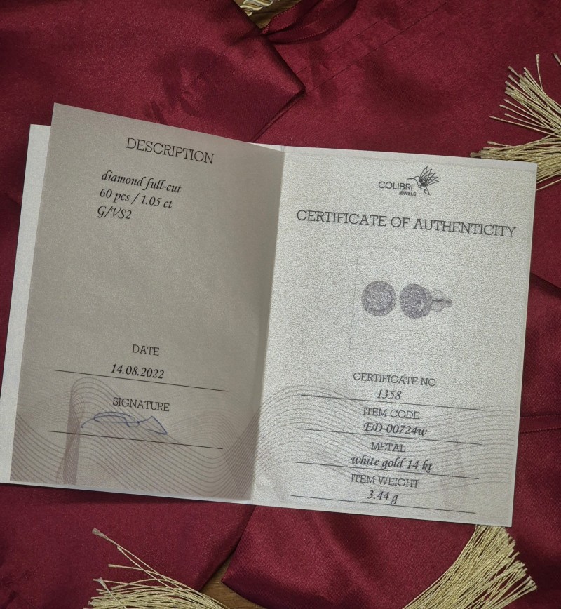 Se trata de joyas fabricadas en Rusia o en los países de la antigua URSS con oro 585 auténtico y macizo. Cada producto tiene sellos probados por la Oficina Estatal de Contraste de la Federación Rusa. Además, cada artículo de joyería está equipado con etiquetas de certificado selladas del fabricante.