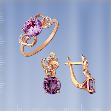 Conjunto de oro rojo ruso 585°con Corindón Alejandrita consta de Pendientes < span itemprop="mainContentOfPage">OR21834 y < / span>Anillo R20723< / span>