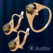 Conjunto de oro rojo ruso 585° con topacio ahumado compuesto por anillos R46930 y pendientes OR46933. Compre estas joyas en un juego, ¿ahorre 10?
