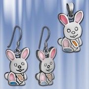 El juego de plata "Liebres" se compone de pendientes y colgantes. Altura de la pieza de trabajo de 20 mm. (sin cierres)