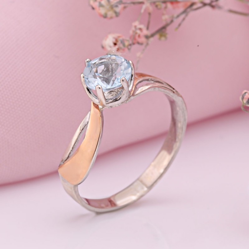 Plata engastada con oro y topacio. Un encantador conjunto de plata compuesto por pendientes y un anillo con inserciones de un topacio increíblemente hermoso. Plata de Ley 925 y oro 375. ¡Una maravillosa adición romántica a tu look! ¡Chapado en rodio!