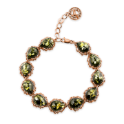 ¡Una magnífica pulsera de plata 925 bañada en oro decorada con ámbar verde, con este sorprendente "pedazo de sol", en todos los tonos de verde, te deleitará y deleitará gracias a su belleza!