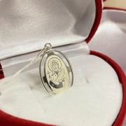 Colgante de plata - icono elaborado en plata de ley 925. Hay una inscripción rusa en la parte posterior.