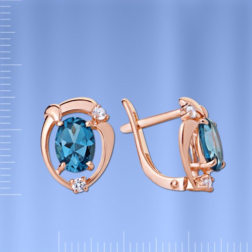 Los encantadores y sensuales pendientes están fabricados en oro rojo ruso 585 y adornados con topacio y circonita.