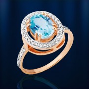 El anillo está hecho de oro ruso rojo/blanco 585° con Topacio (9.0 x 7.0 mm 0.457), 37 fianitas ¢ 1.0 mm