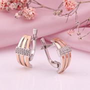 ¡Elegantes pendientes de plata de ley 925 con detalles en oro rosa 417 y brillantes inserciones de circonitas! Esta combinación de dos metales preciosos tiene un aspecto muy elegante. Un maravilloso regalo o una oportunidad para darse un capricho.