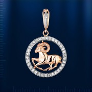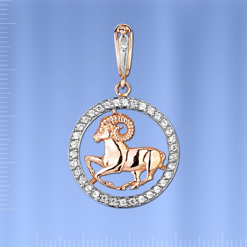 Aries " de oro ruso 585° con 37 fianites ¢ 1,0 mm. Bicolor. Altura con ojal aprox. 40,0 mm. Ancho aprox. 24,0 mm