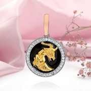Colgante redondo elaborado en plata 925 con baño de oro e inserciones de circonitas. En la parte superior del colgante hay un anillo de cadena. El diseño bañado en oro resulta especialmente expresivo sobre el fondo de esmalte negro. ¡Chapado en rodio!
