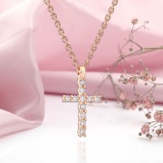 Collar de oro cruz de oro ruso 585 en diamantes de Alemania. Collar realizado en oro rojo 585 decorado con una cruz con inserciones de diamantes. Cadena - trenza de ancla con corte de diamante.