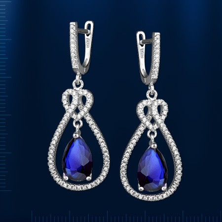 Pendientes realizados en plata 925° con sintético< / span> Zafiroes (12,0 x 5,0 mm)