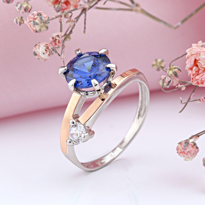 Compra un anillo de plata con oro y circonitas. Un anillo maravillosamente delicado con una circonita encantadoramente brillante. El anillo luce sencillo y elegante en un hermoso marco de plata de ley 925 con detalles en oro rosa 375. ¡Esta decoración tiene la misión de transmitir los sentimientos más brillantes y elevados a su dueño! Esta sorprendente combinación de elegancia, ligereza e individualidad confiere a la decoración un encanto e inspiración especiales.