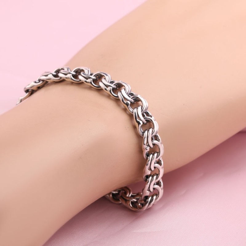 Pulsera fabricada en plata de ley 925 en Alemania. Pulsera clásica realizada en plata de ley 925 con Bismarck talla diamante. El tejido Bismarck es considerado uno de los más bellos y duraderos. Se trata de un tejido complejo pero espectacular que proporciona una fuerte sujeción de los eslabones. Bismarck puede ser simple, doble o triple, hay decoraciones con 4 filas de eslabones. Los collares y pulseras fabricados con la tecnología de tejido Bismarck tienen un aspecto atractivo y sólido, por lo que tienen una gran demanda entre las personas que aprecian la combinación de belleza y practicidad.