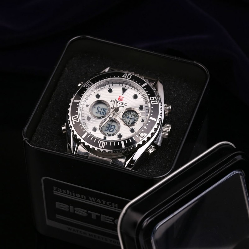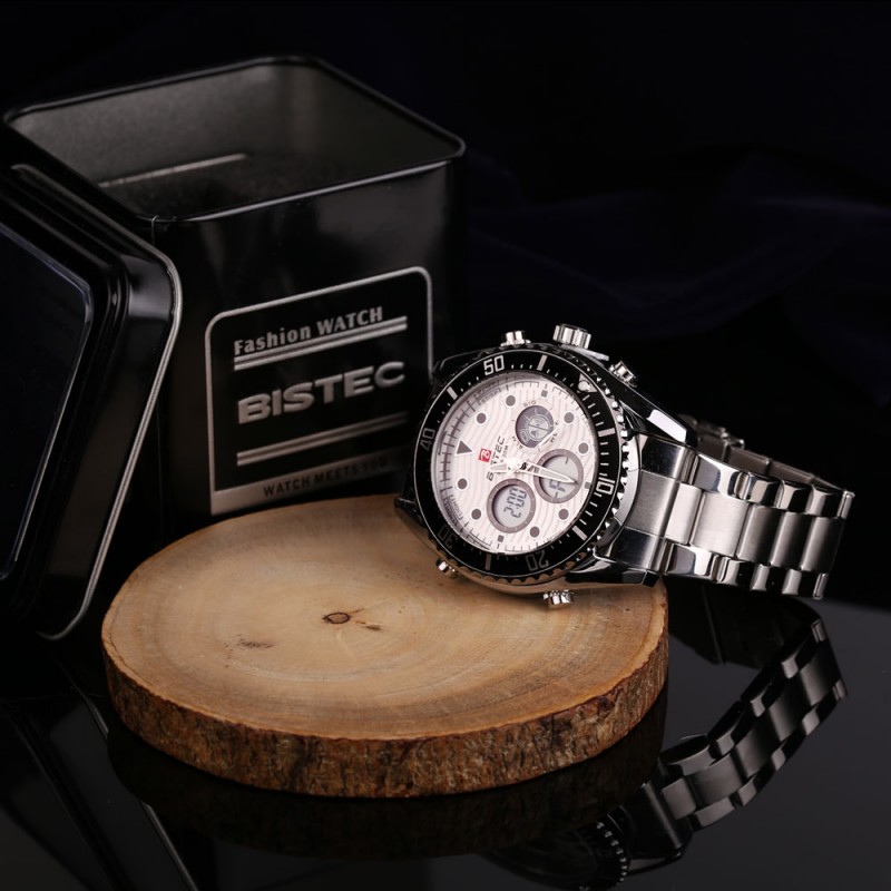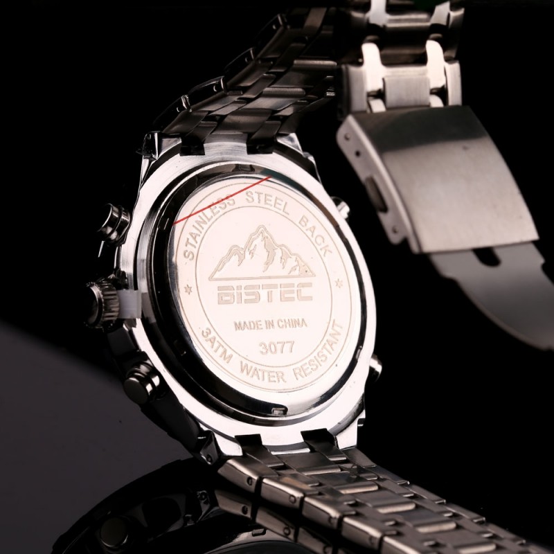 Reloj de pulsera mecánico “BISTEC” con segundero central, calendario, cronógrafo, resistente al agua (profundidad de inmersión hasta 30 m), con iluminación para visión nocturna.
