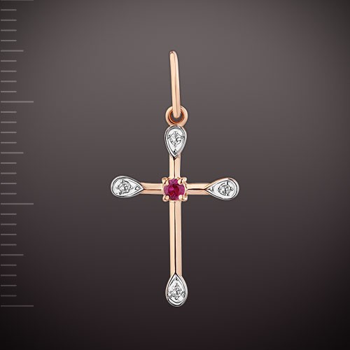 Colgante de oro rojo ruso 585 con 4 brillantes de 0,014 ct