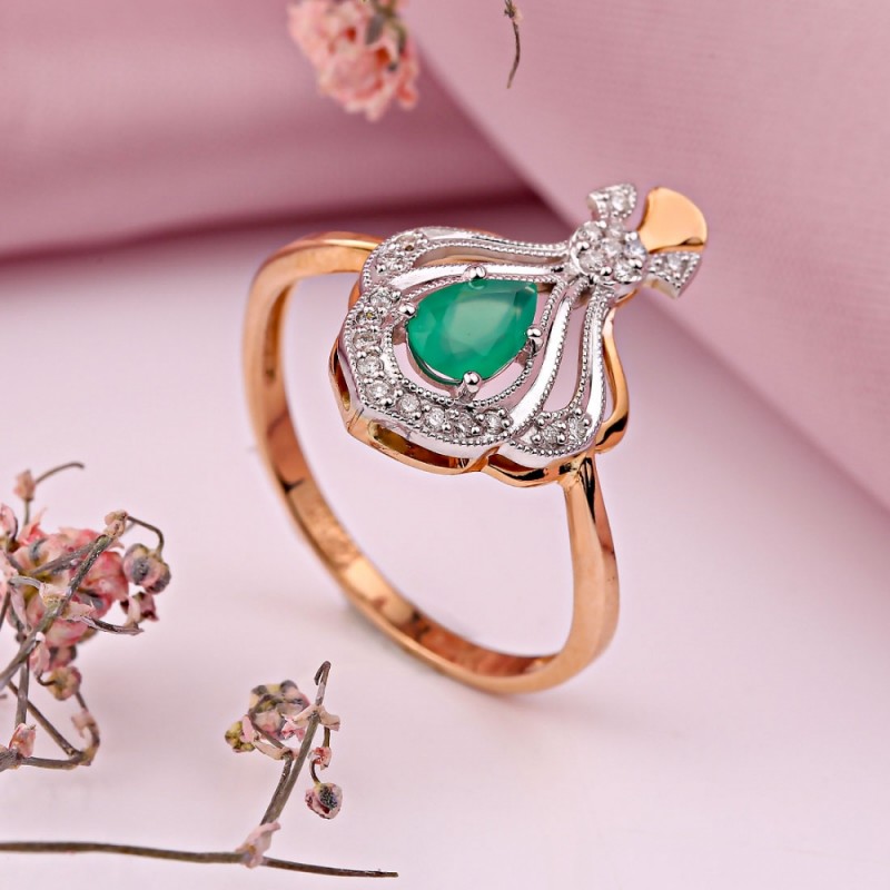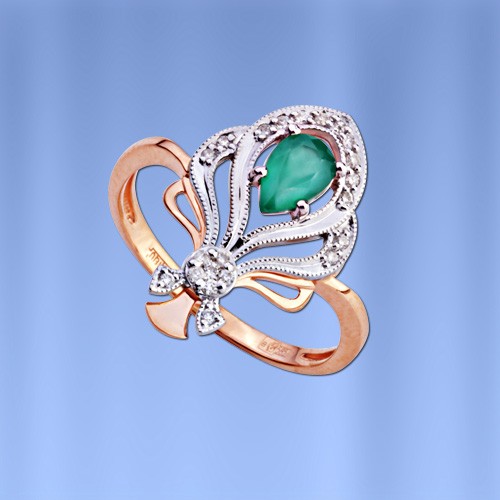 Osta kuldsõrmus teemantide ja krüsopraasiga. Punasest ja valgest kullast 585° teemantide ja krüsopraasiga kaunistatud sõrmus rõõmustab teid ilu ja elegantsiga.
