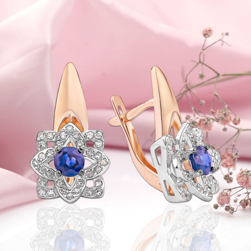Kuldkõrvarõngad 585 Saksamaal teemandid ja safiir. Elegantsed kõrvarõngad 585 punasest kullast lummavate teemantide ja safiiridega. Teemantide ilu täiustavad suurepäraselt valge kulla aktsendid ja safiiri sügavust tõstab esile mustamine. Teemandist ja sinisest safiirist ehted on kombinatsioon keerukusest, luksusest ja elegantsist. Sinine on värv, mida armastavad mehed ja naised; see kiirgab puhtust, rahulikku ja lõbusat ühtaegu. Pole üllatav, et safiiridega tooted on kõige kuulsamate ja edukamate inimeste seas nõudlikud. Teemant- ja safiirtooted on ideaalne kingitus, mis jätab kingisaajast püsiva mulje. Suurepärane võimalus rõhutada oma tunnete muutumatust kallima vastu.