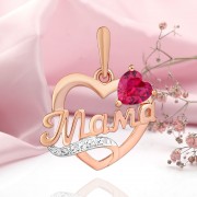 Ripats Vene kuld 585 Saksamaal tsirkoonium. Võluv 14k roosast kullast ripats valge kulla aktsentidega, millel on sädelev kuuptsirkooniumoksiid, punane tsirkooniumoksiidi süda ja kiri "Mama". Imeline kingitus armastatud emale - võimalus väljendada armastatud inimese vastu armastust ja tänu.