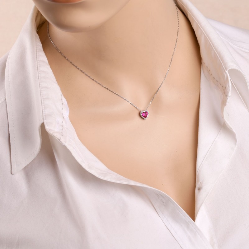 Osta kaelakee hõbedast 925. Õrn kaelakee 925 hõbedast tsirkooniumoksiidi südamega - elegantne ehe, mis sümboliseerib armastust, kiindumust ja romantikat. Disaini keskpunktiks on südamekujuline rubiinivärvi tsirkooniumoksiid, mis on raamitud väikese valge tsirkooniumiga ja sädeleb eriti kaunilt.