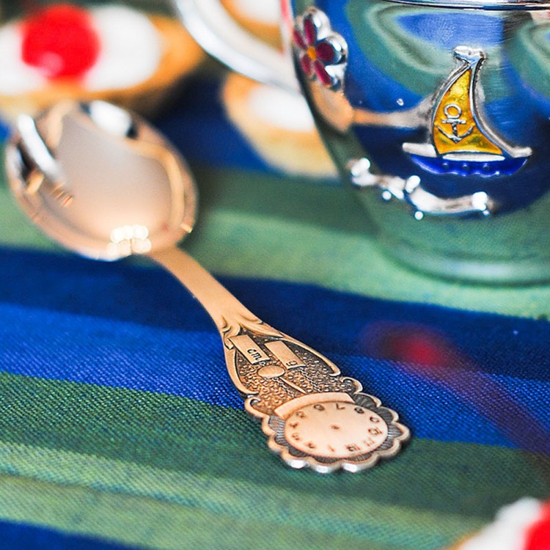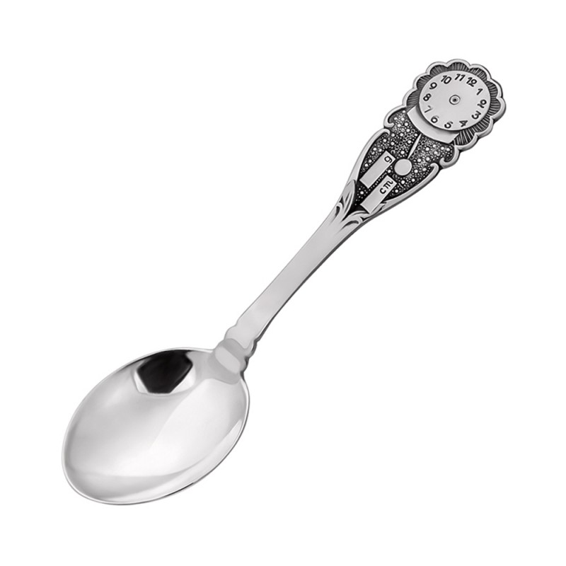 Детская ложка на зубок из серебра 925 пробы Часики. Эта серебряная ложка для часов станет незабываемым подарком