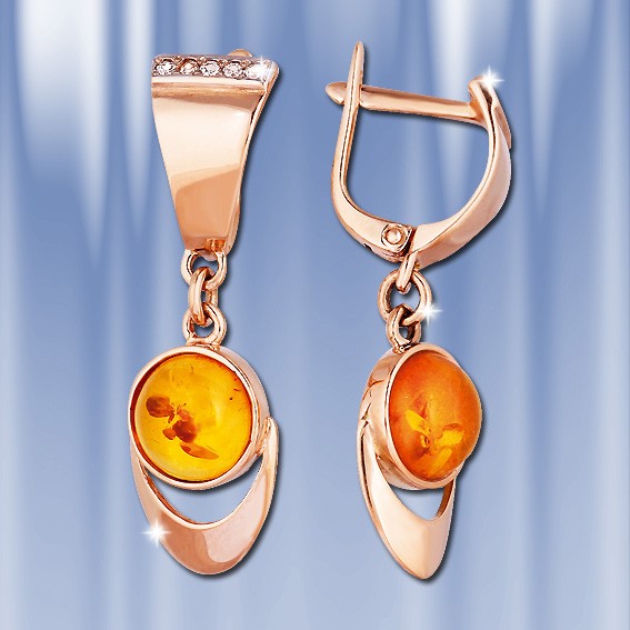 Kõrvarõngad merevaiguga. Vene kullast ehted