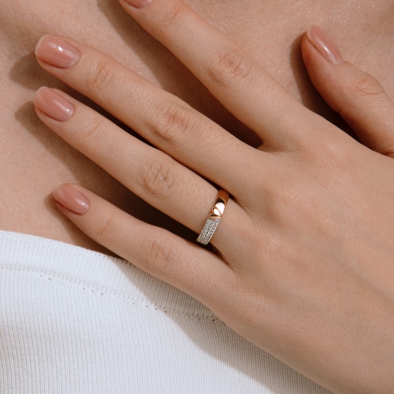 Ostke naiste sõrmuse kullast tsirkooniumoksiidist Internetist. See 18k roosast kullast sõrmus kollektsioonist Love kehastab õrna ja elegantset sõnumit. Väike süda lisab õrna aktsendi ja annab disainile sooja, isikupärase ilme.