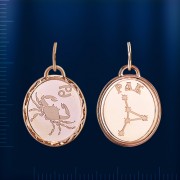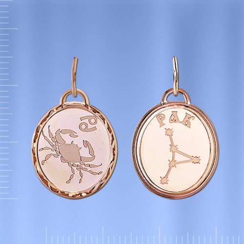 Vene punasest kullast 585° sodiaagimärk "Vähk". Kõrgus koos aasaga ca 25,0 mm. Laius ca 15,0 mm