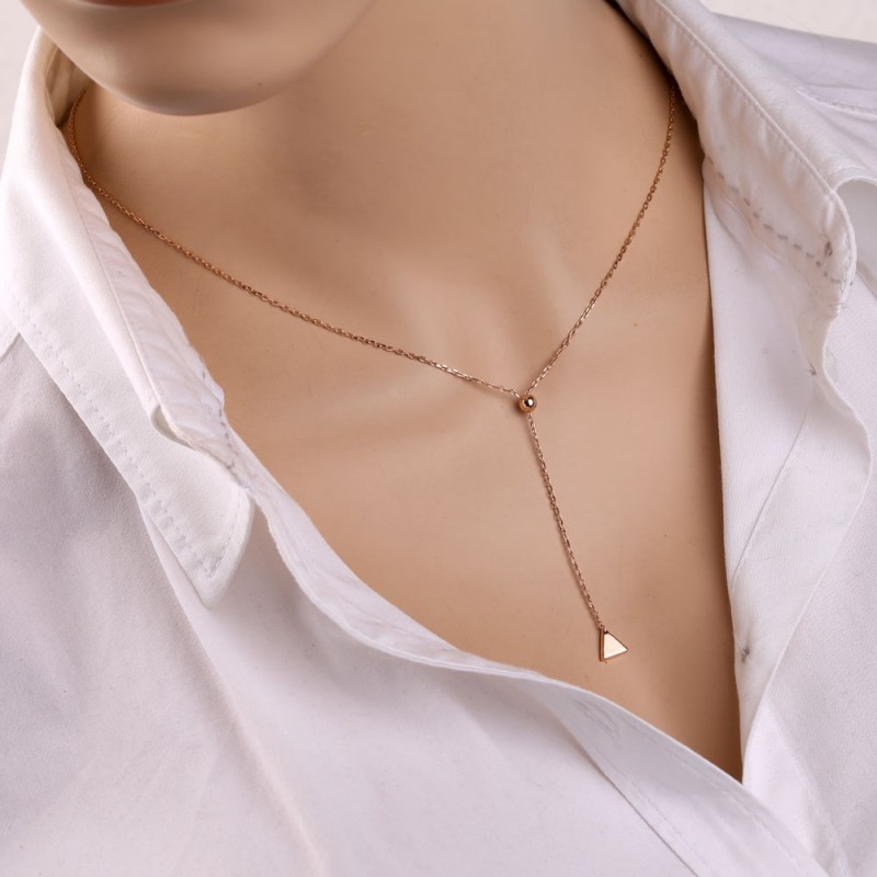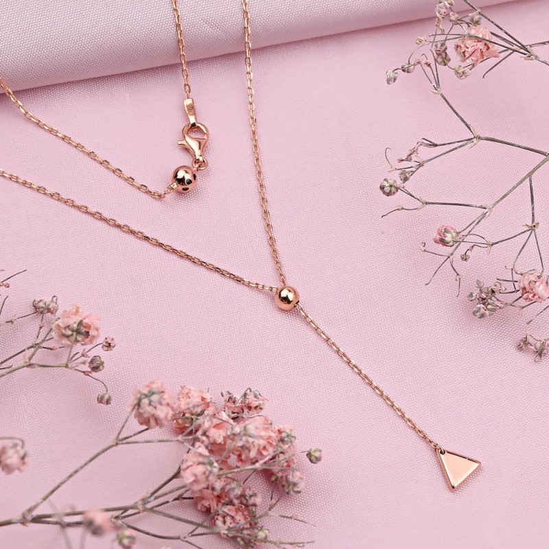 Õrn ja romantiline kaelakee 585 roosast kullast originaalse moeka ripatsiga tõmbemehhanismiga. Kett - teemantlõikega ankurpunutis.