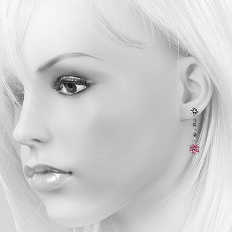 Hõbe 925 kõrvarõngad. Kõrvapuhastus, mis on valmistatud 925 hõbedast rubiini ja markasiidiga - elegantsed ehted. Need mustandatud 925 hõbedast kõrvarõngad avaldavad muljet oma kõrgekvaliteedilise töö ja üllas optikaga. Mustitud hõbe annab ehtesügavuse, rõhutab filigraadi üksikasju ja tagab ainulaadse vintage ilme.