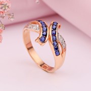 Bague en or avec diamants et saphir. L'or russe en Allemagne. La bague est en or rouge russe 14 carats avec des accents de diamants, de saphir et d'or blanc. Cette bague est le complément parfait à l'image d'une femme élégante qui aime changer d'apparence. Expressive et sophistiquée, la bague convient aux femmes de tous âges qui apprécient les designs intéressants et les pierres impeccables. L'or blanc met en valeur la beauté des diamants d'une manière particulière. Bien sûr, chaque femme rêve d’un cadeau aussi inoubliable et inspirant !