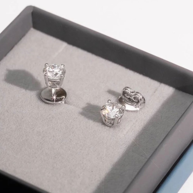 Exquisite klassische Ohrstecker „Celeste“ mit einem Paar im Labor gezüchteter Diamanten von jeweils 1 Karat, gefertigt aus 585er Weißgold, das die ideale Farbe und das Funkeln der Diamanten unterstreicht. Jeder im Labor gezüchtete Diamant besitzt höchste Farbmerkmale D und Reinheit VVS1. Beide im Labor gezüchteten Diamanten sind vom renommierten gemmologischen Institut IGI zertifiziert.