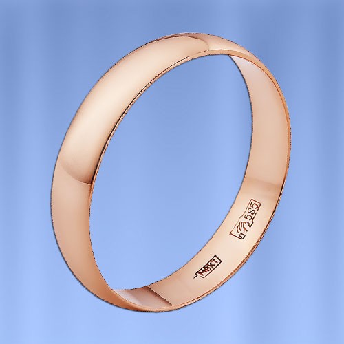 Alliance russe en or rouge "russe" 585 échantillons (14K). L'anneau a une surface extérieure polie miroir d'env. 3,7 mm. large. Sur la surface intérieure de l'anneau le poinçon est appliqué autour du poinçon de l'or.